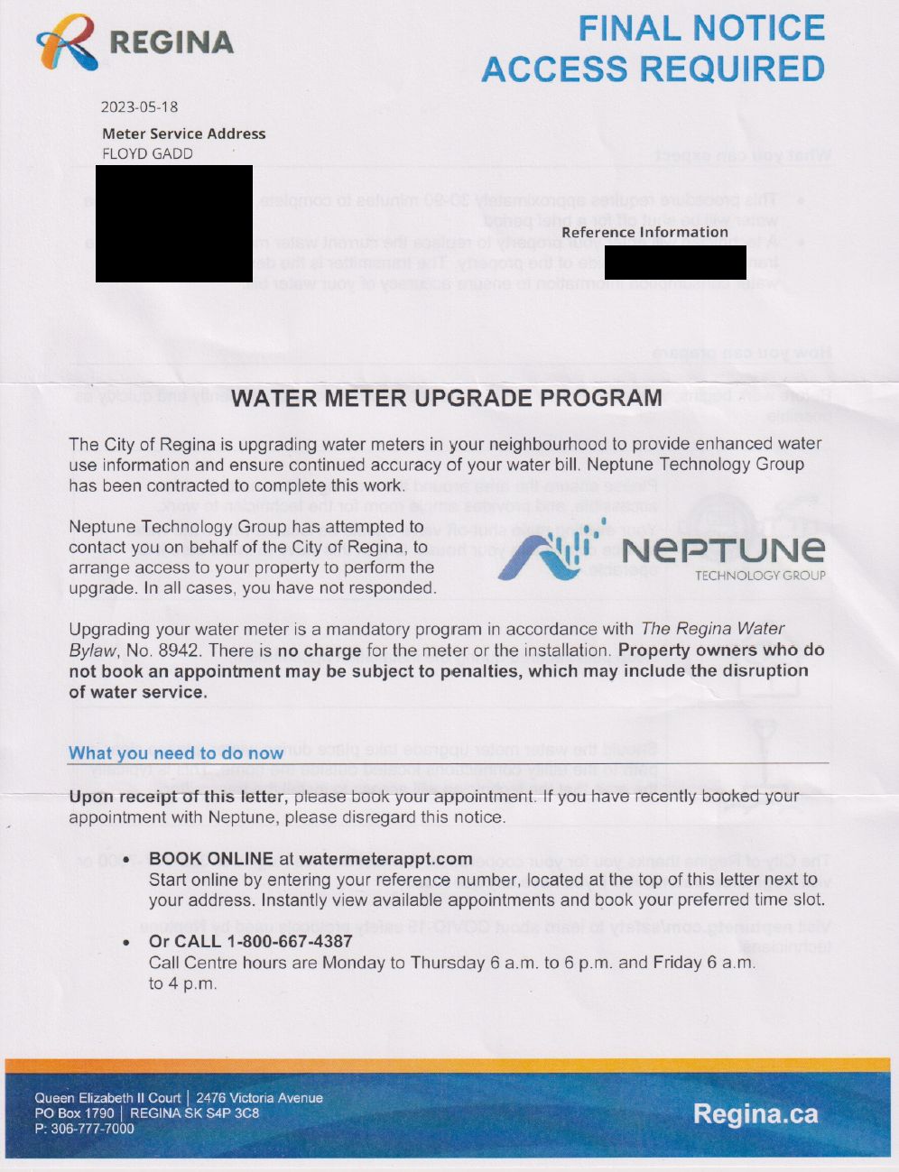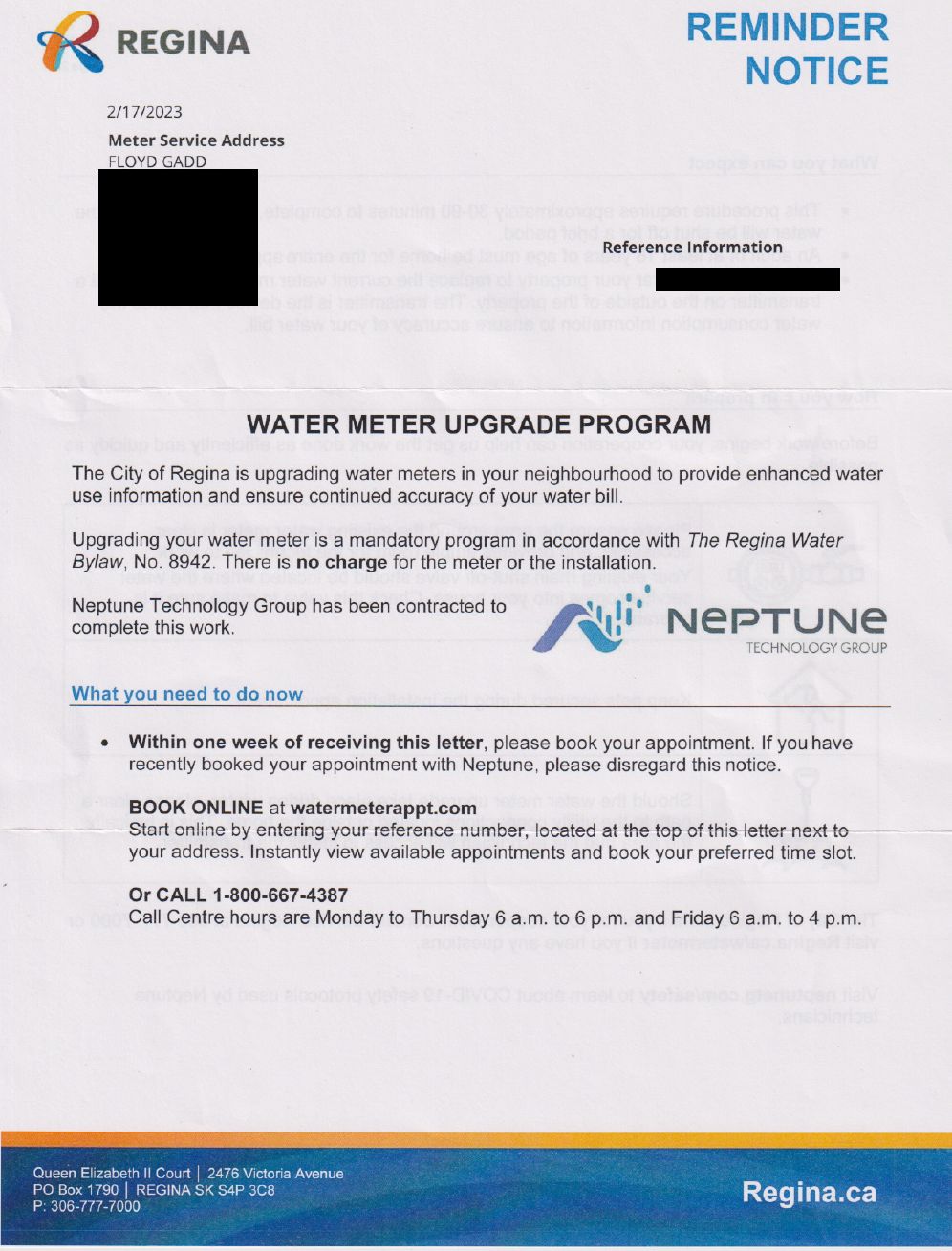 Reminder Notice Note the emphasis that the installation of the new water meter system is mandatory. (Remember that the system includes a radio transmitter.)